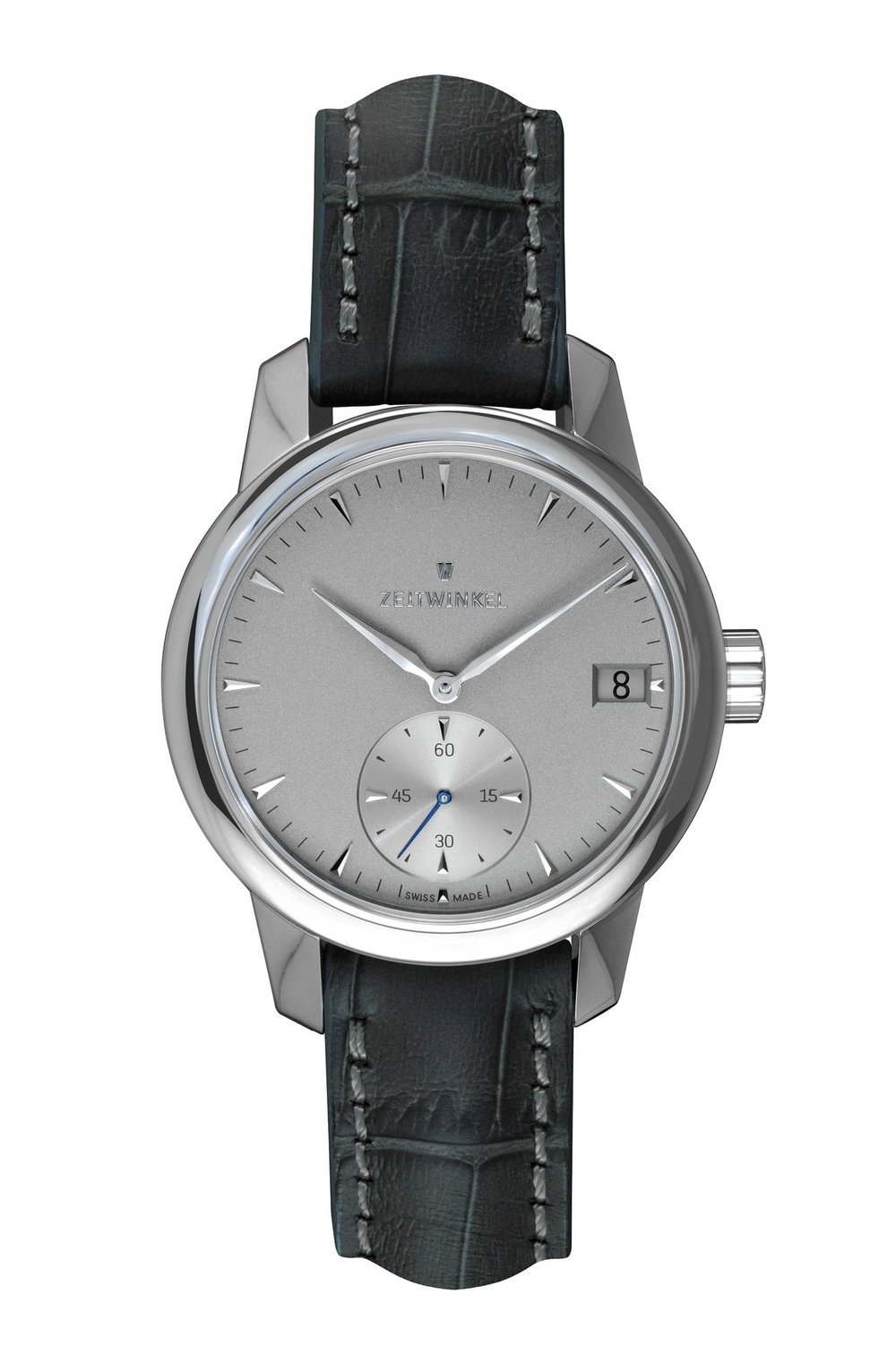 While this latest creation from Zeitwinkel is distinguished by its understated elegance and its design inspired by pocket watches, the 188° model also highlights the refinement and expertise inherent in Swiss styling and quality. The galvanic rhodium dial, the off-centred seconds at 6 o’clock and the date window at 3 o’clock also testify to this harmonious tradition. Lending a subtly innovative touch, the modestly sized 39 mm-diameter case houses an automatic Manufacture movement, the ZW0102 calibre. Three other black, silver and blue versions are available. A result that will delight aficionados!