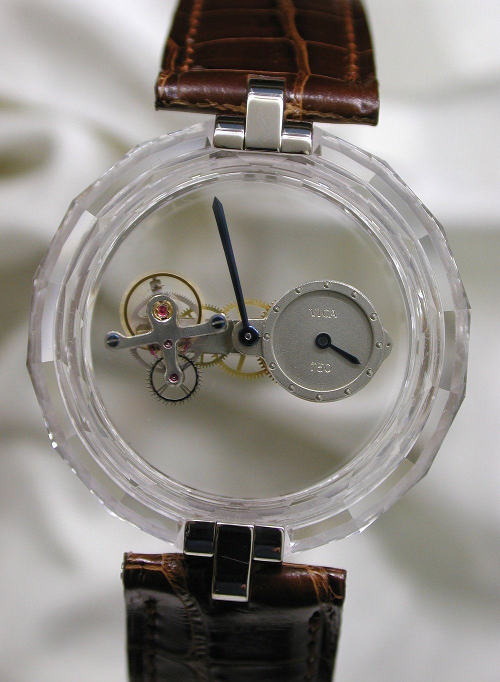 At the summit of his art, master watchmaker Vincent Calabrese presents the purest rendering ever of a tourbillon regulator: Régulus. A fascinating case in white sapphire contains a movement, proposed in 18K white or yellow gold, whose design and manufacture are entirely the watchmaker’s work. The skilfully orchestrated wheels come alive against a backdrop of absolute transparency, as if to remind us that the essence of watchmaking has always lain with mechanical genius.