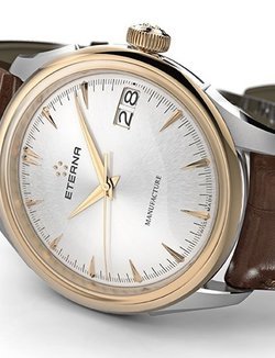 In 1948, Eterna unveiled a groundbreaking invention in the technology of automatic movements, with a ball-bearing mounted rotor. By facilitating the rotation of the oscillating weight or rotor around its axis, this revolutionary innovation reduced wear on crucial parts, and in doing so increased the lifespan of the movement. The year 1948 will remain forever engraved in the history of the mechanical watch; Eterna even adopted these five ball bearings as its logo. The company now returns to this iconic timepiece in the new 1948 watch, which is of course equipped with the same ball-bearing system as the original, and reprises the famous curved lugs.