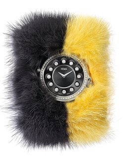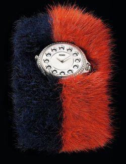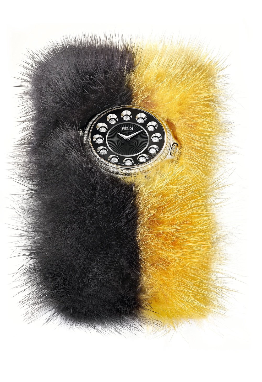 In its Italian workshops, Fendi takes fur towards peaks that have not been explored for almost a century. Bearing testimony to this longstanding tradition, the new Crazy Carats watch is fitted with a precious strap in two-tone mink, while the watch itself features a number of sparkling surprises. A turn of the crown reveals three different types of gemstones according to the mood of the moment. White diamonds or blue or pink sapphires alternately light up this luxurious composition, underscored by fascinating gemsetting on the bezel. The mysterious and enchanting Crazy Carats comes in four different versions, each available in a 50-piece limited series.