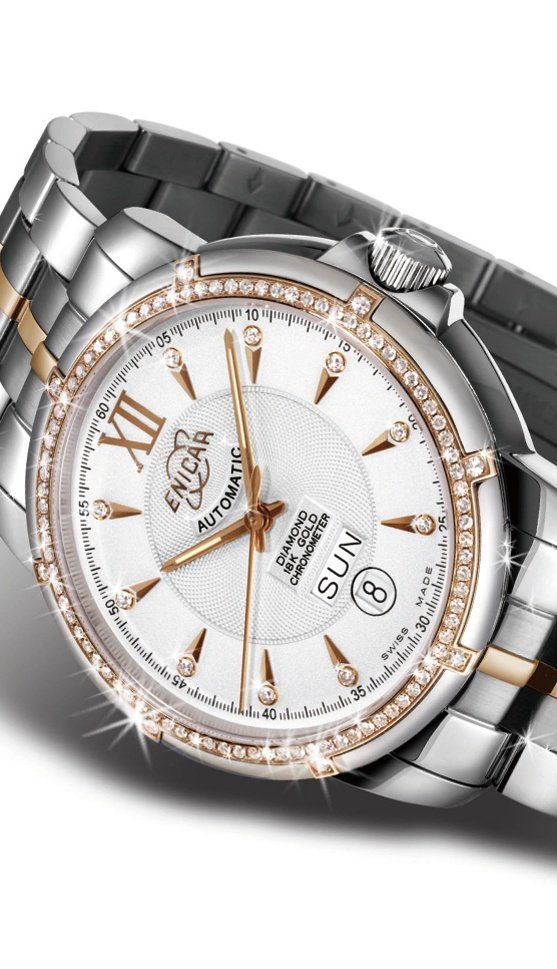 Inspired by the gardens at the renowned French château, the Versailles watch will work its magic on those with an eye for refinement and beauty. On this jewel of sophistication, each element is composed with exquisite art. The centre of the dial is adorned with a delicate motif while ten sparkling diamonds denote the hours around its circumference. The bezel, which is crafted from 18K rose gold, cradles the 96 diamonds that illuminate the whole, interspersed with eight other precious stones to create a fascinating effect. Precious and unique in each of its facets, the Versailles watch is brought to life by a COSC-certified automatic chronometer movement. An interchangeable bracelet adapts to different moods, with two-tone 18K rose gold / 316 L steel or leather.