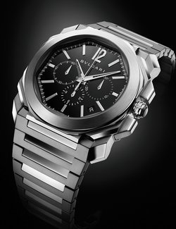 An authentic work of art dedicated to strong personalities, the new Octo Velocissimo transcends its pure function to take on a more universal dimension, brimming with aesthetic and emotional meaning. This sophisticated creation with a technical vocation proclaims an exceptional style elegantly staged in octagonal lines, while the three counters arranged in a V shape create a pleasing visual balance on the hand-polished lacquered dial. This precious object distinguished by a blend of complexity and power is driven by an ‘engine’ worthy of its ‘bodywork’: the Velocissimo calibre, an integrated column-wheel chronograph movement with a silicon escapement, beating at the high frequency of 36,000 vib/h and dedicated to achieving exceptional precision.