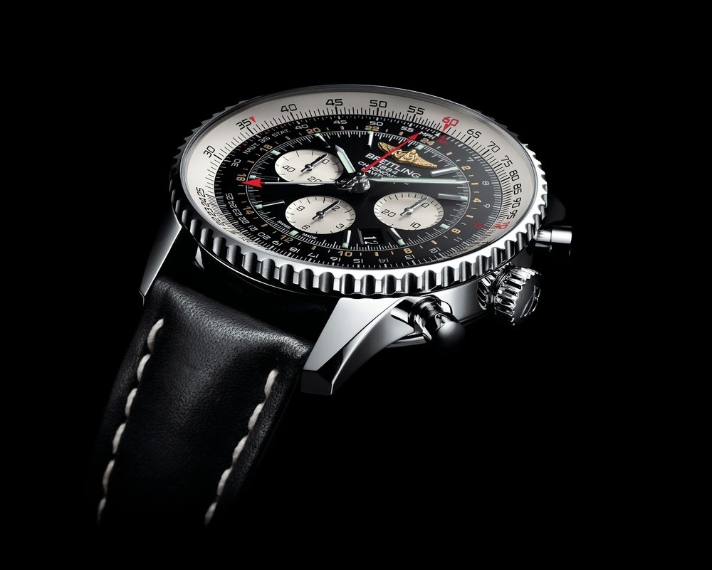 In 1952, Breitling created the Navitimer watch, a “wrist instrument” specifically designed for pilots and other aviation professionals. Equipped with a circular slide rule, this chronograph soon became a cult object among passionate aeronautical enthusiasts. A loyal companion to airborne adventurers, it has always had the world as its horizon. The new Navitimer GMT confirms this vocation and thinks big with an imposing 48 mm case. The ingenious Manufacture Breitling Calibre B04 visible through the sapphire caseback powers an exceptionally functional dual timezone system: simply pulling the crown out and turning it backwards or forwards in one-hour increments is enough to adjust the watch to the hour and date of the travel timezone, while maintaining home time in 24-hour mode and losing no precision in terms of the minutes.