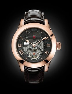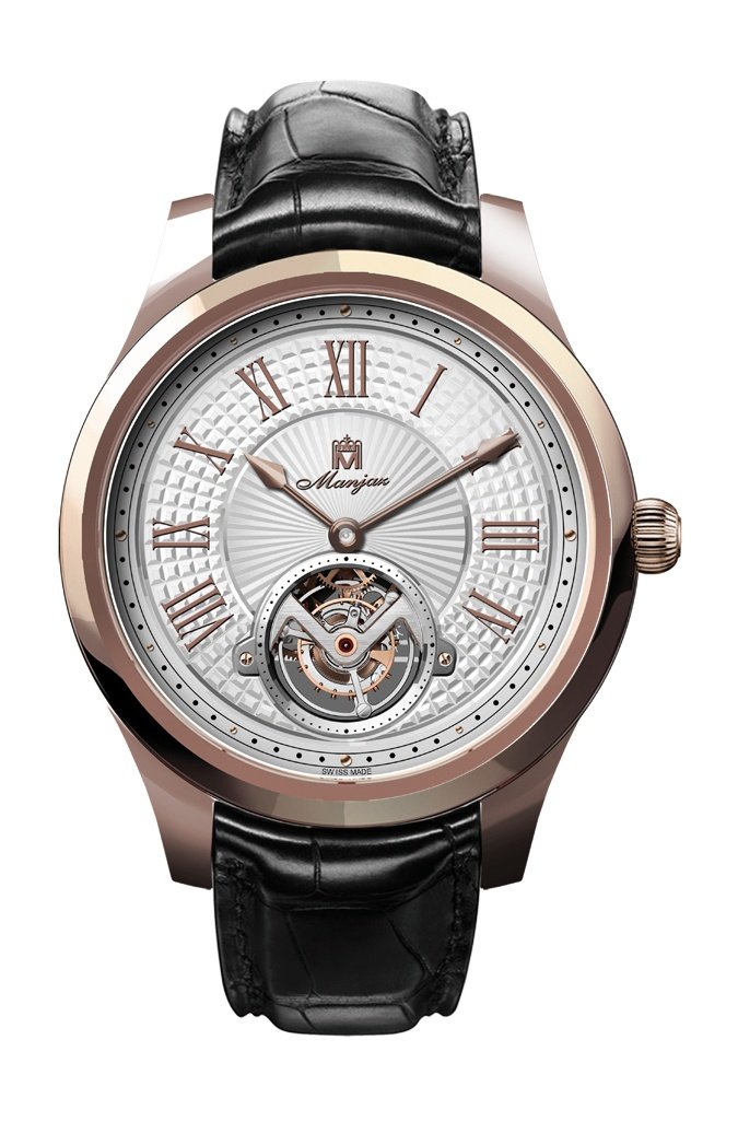 Two timepieces, two expressions of the Manjaz values: the full wealth of Swiss expertise and tradition combined with Chinese philosophy. The complementary yin and yang forces encircle the supreme horological complication. Majestically enthroned its carriage at 6 o’clock, the tourbillon with its elegant spinning motion boldly defies the laws of gravity, surrounded by a white-clad dial adorned with fascinating guilloché effects. At its centre sits a delicate central sunburst motif engraved with the Manjaz logo, while the dial rim is graced with a mosaic pattern of small squares topped by classic Roman numerals. In the Yang version, the watch appears in a black, subtly worked version revealing part of its gear wheels adorned with Côtes de Genève. Yin or Yang: the forces of the universe are harmoniously depicted within a pink gold case providing a precious frame for this mechanical close encounter.
