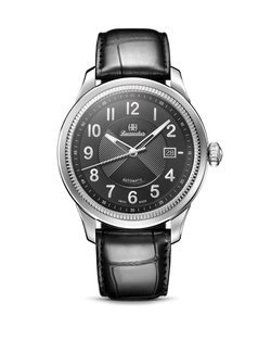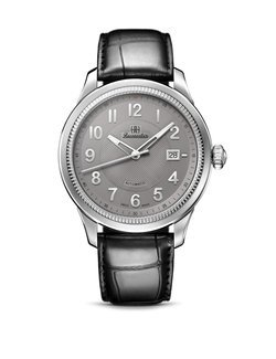 >>> Mechanical automatic movement. Hours, minutes, seconds, date. 42 mm steel case. Leather strap.