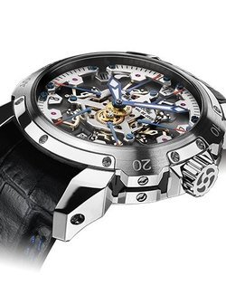 Truly an icon of Pierre DeRoche watchmaking, the TNT Royal Retro celebrates the 10th anniversary of the brand in its unique way. Its case slims down to a diameter of 43mm without sacrificing any of the watch’s forceful personality. The hour marker at the 10 o’clock position turns red, a nod to this anniversary year. The only complication of its kind in the world, the sight of 6 seconds hands passing one to the other is as hypnotic as ever. A new page written in the history of Pierre DeRoche.>>> Mechanical automatic movement, exclusive calibre. Hours, minutes, retrograde seconds in 6 ten-second sectors, moving retrograde hand indicator, date. Limited edition of 10 commemorating the brand’s 10th anniversary.