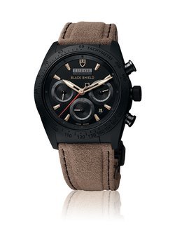 When Tudor turns its attention to high-tech ceramic, the result has to be completely out of the ordinary. The new Tudor Fastrider Black Shield is the perfect example. The case is a technical tour de force, produced entirely from matt black high-tech ceramic and in one single block. Everything about this all-black chrono says strength and masculinity. Cleverly contrasting with its dark vibe are the touches of bronze on the dial. Not forgetting the high-energy red seconds hand, a reminder that this is a watch dedicated to speed and performance, and more to the point the legendary world of Ducati bikes.>>>Mechanical automatic chronograph movement, TUDOR 7753 calibre. Matt black ceramic monobloc case with fixed bezel and engraved tachymeter scale. Hours, minutes, seconds, chronograph, date, tachymeter. Beige Alcantara® strap.