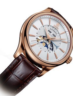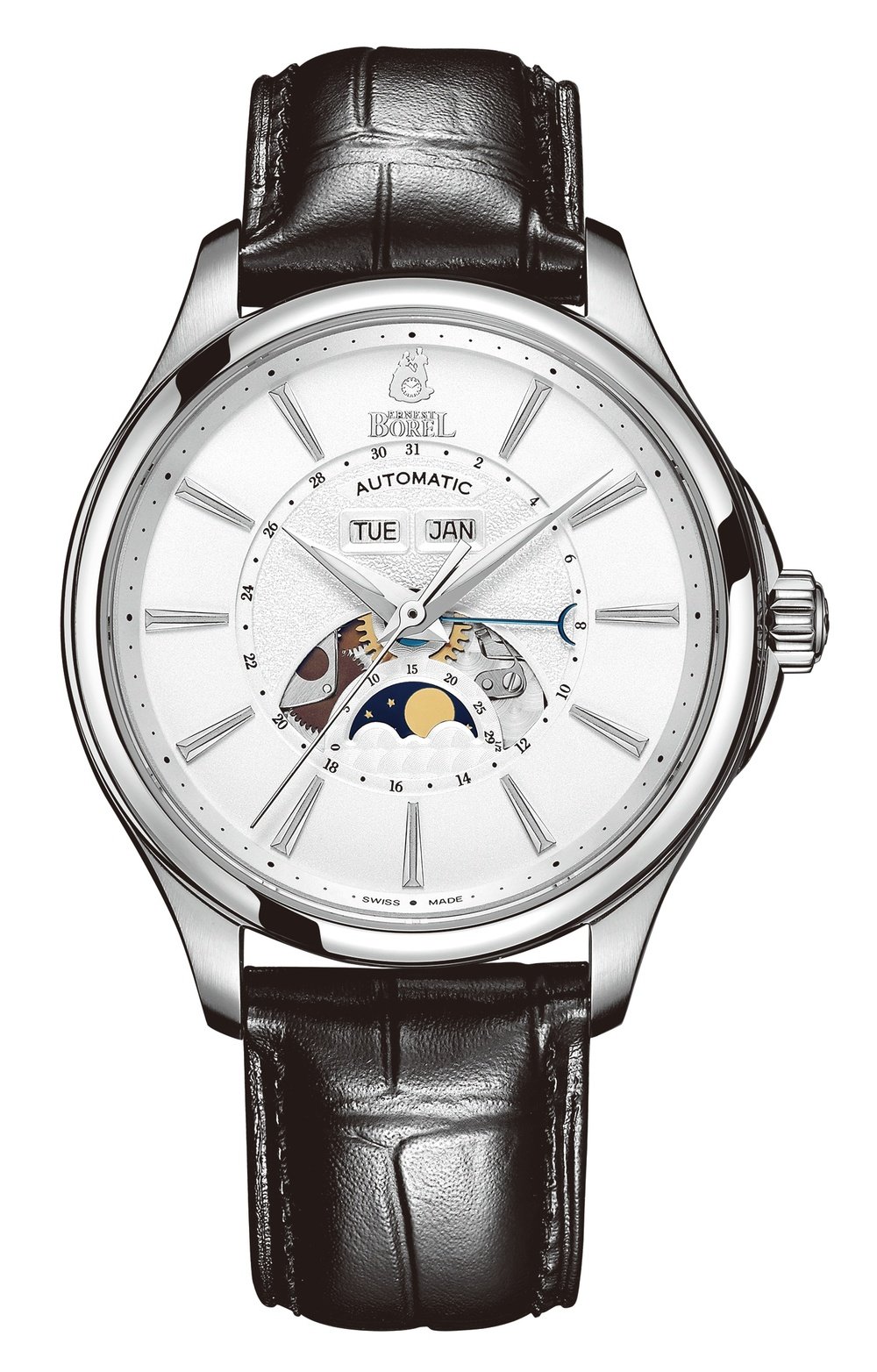 With its new Duke collection, Ernest Borel presents an exquisite match between two opposites. On the one hand, a simple, elegant and remarkably pared-down design. On the other, the sophistication of a mechanical movement comprising several masterfully orchestrated horological complications: day, date, month and moon phases. A veritable compendium of the watchmaking expertise cultivated by Ernest Borel, this combination of simplicity and complexity paid tribute to the history of the Jura-based company, embodying a perfect balance between tradition and modernity.