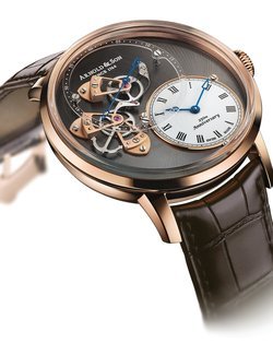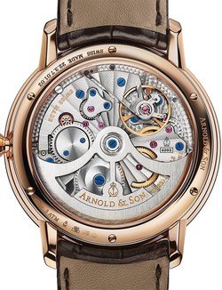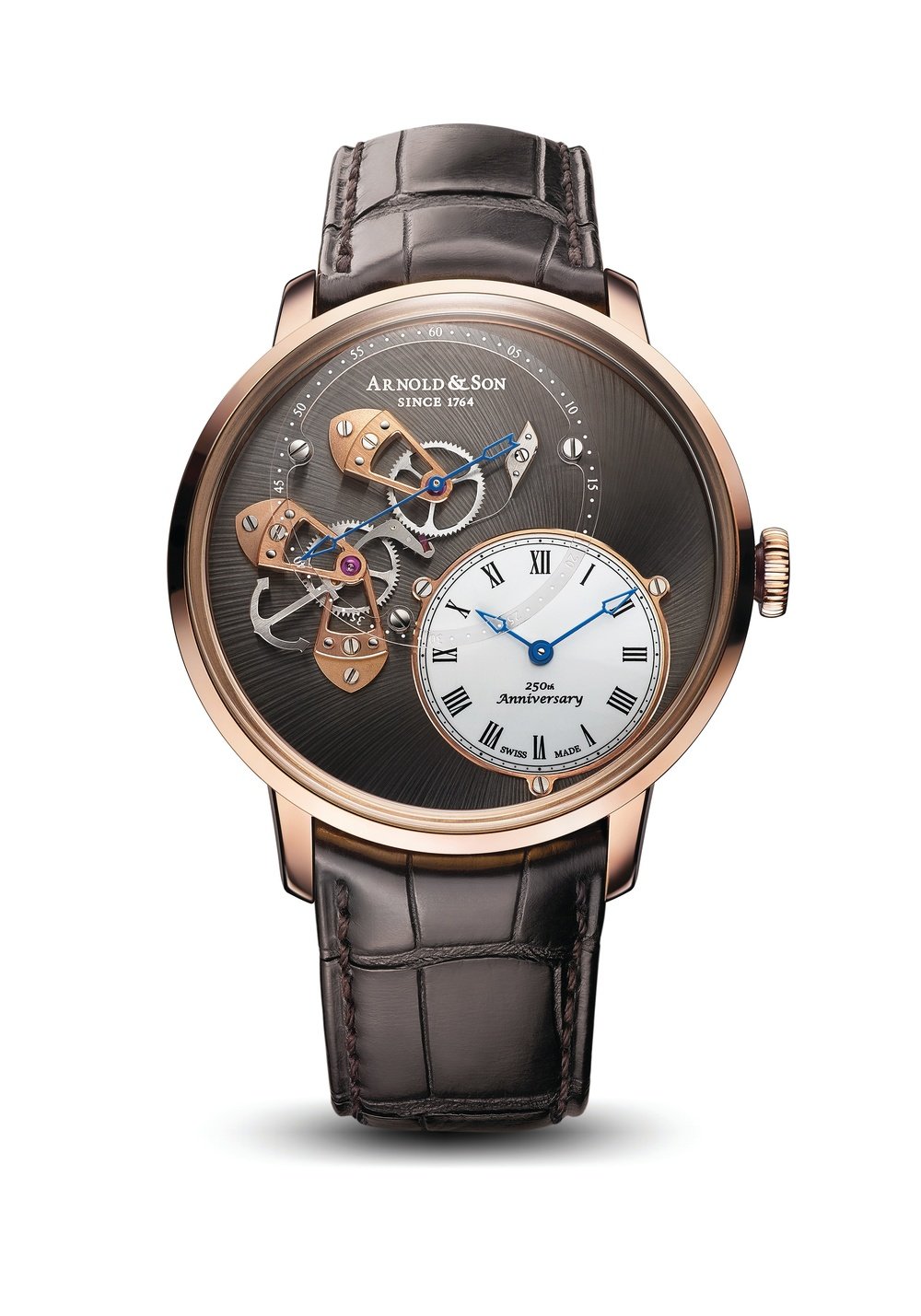 Arnold & Son celebrates its 250 years of history by offering an exceptional model honouring both its British origins and the traditions upheld by the field of Swiss Haute Horlogerie, of which it is one of the finest ambassadors. In tribute to its founding father John Arnold, who together with his son produced the first marine chronometers to be offered in substantial quantities and at reasonable prices, the Instrument Collection DSTB beats to the tune of a new manufacture movement featuring one of the complications most closely associated with the House: deadbeat seconds. In keeping with the original spirit of innovation, the calibre enables this fascinating mechanism to be admired on the dial side through a construction that is unique in the world. Not only does the deadbeat seconds hand perform one-second jumps for all to see, but the three gilt bridges, wheels and yoke are also clearly visible. In a nod to marine chronographers, the latter is shaped like an anchor. Adding the ultimate touch of refinement to this exceptional creation, an extremely elegant lacquered white subdial displays the hours and minutes at 4 o’clock and uses clever layering to create striking 3D effects. 50-piece limited edition.