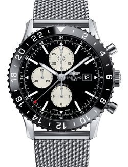 Already serving as “official supplier to world aviation” in the 1950s and 60s, Breitling now finds inspiration in a model from that era to present its new Chronoliner. This chronometer duly certified by the COSC, like all Breitling chronographs, is pursuing the brand’s longstanding aeronautical tradition in a spirit that is both modern and timeless. Its distinctive features include a broad scratch-resistant high-tech ceramic bezel with a star-shaped cut-out that facilitates handling as well as white ceramic numerals creating an optimal contrast. The second timezone is easily read off by means of a red-tipped hand together with a 24-hour graduated rotating bezel equipped with an ultra-accurate ratcheted system. The dial is distinguished by its perfect readability, with white luminescent hour-markers standing out against a black background, oversized hour/minute hands and luminescent counter hands. The model is complemented by a comfortable and distinctive steel mesh bracelet.