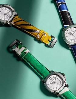 Burberry adds to its watchmaking repertoire a new limited-series collection. Comprising four versions, The Britain S/S15 Runway – The Birds and The Bees is inspired by the hand-painted prints from the Prorsum womenswear show for Spring/Summer 2015. The straps, in damson, daffodil, peacock or dragonfly, are crafted from the same leather worn by the models in the Prorsum show. Each echoes the vibrant patterns of the different runway outfits, in a mesmerising rainbow of colour. As always, design is courtesy of Christopher Bailey, artistic director and CEO of Burberry.
