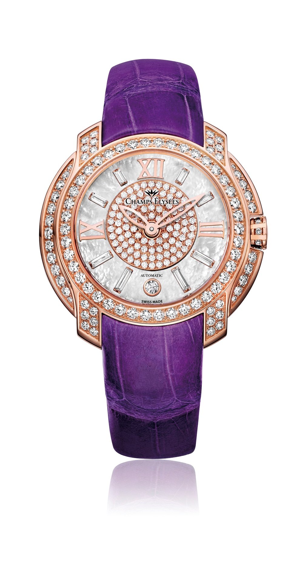 A new name in Swiss fine watchmaking, Champs Elysées, based in Neuchâtel, proposes delicately crafted, beautifully gem-set timepieces. Its Estelle watch takes inspiration from the world-famous Place de l’Etoile in Paris, giving the Champs Elysées name its full resonance. With its pavé dial, diamond-set bezel and yet more diamonds set on its case, Estelle comes draped in a total of 2.9 carats, composed exclusively of stones graded D and E for colour (with a very small proportion of F). This timepiece lends itself to every occasion and every wardrobe, and confers sophisticated, contemporary elegance on its wearer. Through precious materials such as 18K pink gold and white mother-of-pearl, together with an automatic movement, Estelle combines the signatures of traditional watchmaking with the refinement of jewellery, developed with Swiss-Made expertise. What else could one expect when the world’s most prestigious avenue meets the birthplace of fine watchmaking.