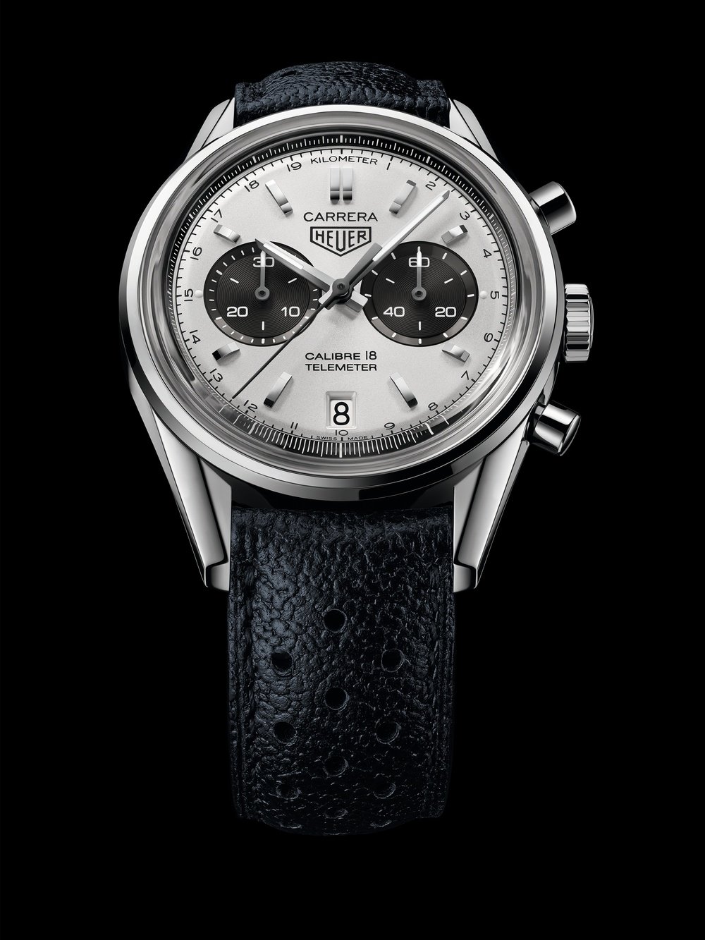 To create its new Carrera Calibre 18 Chronograph, TAG Heuer has drawn inspiration from a true icon: the first chronograph specially designed for racing drivers that Jack Heuer made in the 1960s. It’s all there: the original Panda effect with two anthracite counters standing out against a silver-toned dial; robustness together with tried and trusted functionality, and even the historical Heuer logo. Topped by a spherical sapphire crystal inspired by the original model, this vintage-touch automatic chronograph is also equipped with a telemetric scale on its inner bezel ring. This function was formerly used by the military to measure their distance from artillery fire based on the speed of sound. Modern-day adventurers notably use it to see how far they are from a storm. The kind of adventurers who can perfectly identify with the Carrera collection, whose Spanish name means “top-level competition”.