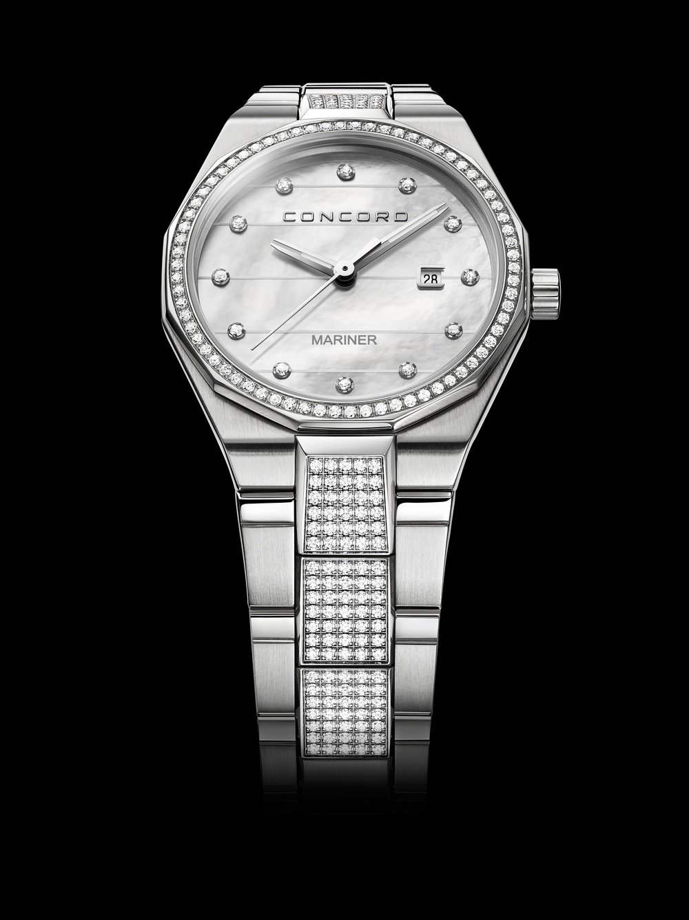 The characteristically relaxed atmosphere of a marina. Long evenings spent on the pontoon, a gentle breeze floating in the air. The inspiration for a sophisticated and modern watch for men and women. Its name: Mariner. Unveiled last year, it now welcomes a new version for women that takes elegance and style to a new level. Crafted from steel, it boasts a delicately diamond-set bezel surrounding a mother-of-pearl dial whose gentle sheen captures the mood of a beautiful summer’s evening, overlooking the sea. And yet the eye is irresistibly drawn to the bracelet. Set with an astonishing 200 diamonds, it brings an air of eternity to the wrist. An ode to femininity culminating in 1.053 carats between the bracelet, bezel and dial.