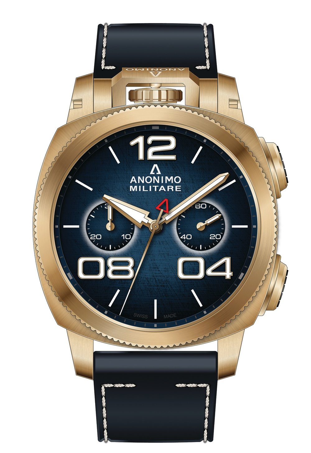 Expressing the Tuscan soul of Anonimo, the new Militare Chrono honours the bronze work done on the brand’s Florence workshops, while combining it with Swiss watchmaking expertise. Like the statues adorning Italy’s most beautiful squares, everything begins with a block of solid bronze that the artisans sculpt until a particularly hard and scratch-resistant watch case emerges – ready to welcome a fine Swiss mechanism. An automatic movement powers this elegant chronograph set to become a new brand classic, with its emblematic 12 o’clock crown. Perfect readability is ensured by counters elegantly arranged on a midnight blue dial providing a perfect backdrop for three large stylised numerals.