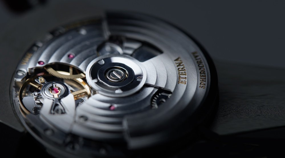 Mechanical automatic Eterna 3945 movement on 39 base calibre, 28 jewels, 28,800 vib/h, Spherodrive ball bearing-mounted spring barrel, 68-hour power reserve