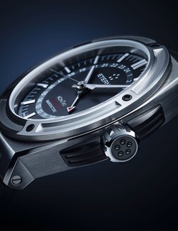 A legendary watch and longtime star of the Eterna collections, the KonTiki returns with a brand-new heart. And what a heart! The first of 88 possible variations of the new Calibre 39 by Eterna – a Manufacture movement based on an ultra-rational construction and capable of generating interpretations ranging from a two-hand manually-wound version through to an automatic chronograph. And all that in chronometer-precision quality! Three screws are enough to secure any and all of the modules or sub-assemblies, themselves composed of a limited number of parts. The first variation of this refined mechanism features a dual-time display elegantly staged on a dial by means of a red pointer sweeping around a light-and-dark-shaded ring corresponding to nighttime and daytime hours. The robust and sporty new case of the Royal KonTiki borrows its sandblasted curved grooves from the 1970s models, while proudly sporting a curvaceous case that is unmistakably its own.