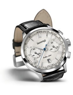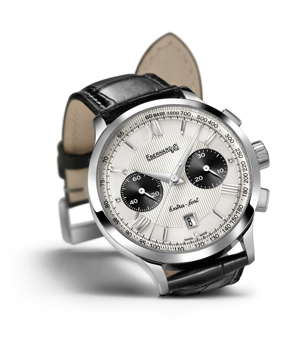 One of the most characteristic chronographs from Eberhard & Co., the Extra-fort Grande Taille reaches a new level of sophistication and attention to detail. Its steel case moves to a 41-mm diameter, making it the largest in the collection. The dimensions are dictated by the movement inside, a tried and trusted automatic chronograph whose natural thickness is offset by the rounded, bassine caseback. These elegant, harmonious lines effortlessly adjust to the curve of the wrist. The dial has been completely rethought. Still with a tachymeter scale, it comes as four variants: silver or blue with silver counters, grey with grey counters, or silver with black counters. All share a textured surface and new applied Roman numerals. The Extra-fort Grande Taille thus has all the qualities of tradition, elegance, refinement and lasting charm.
