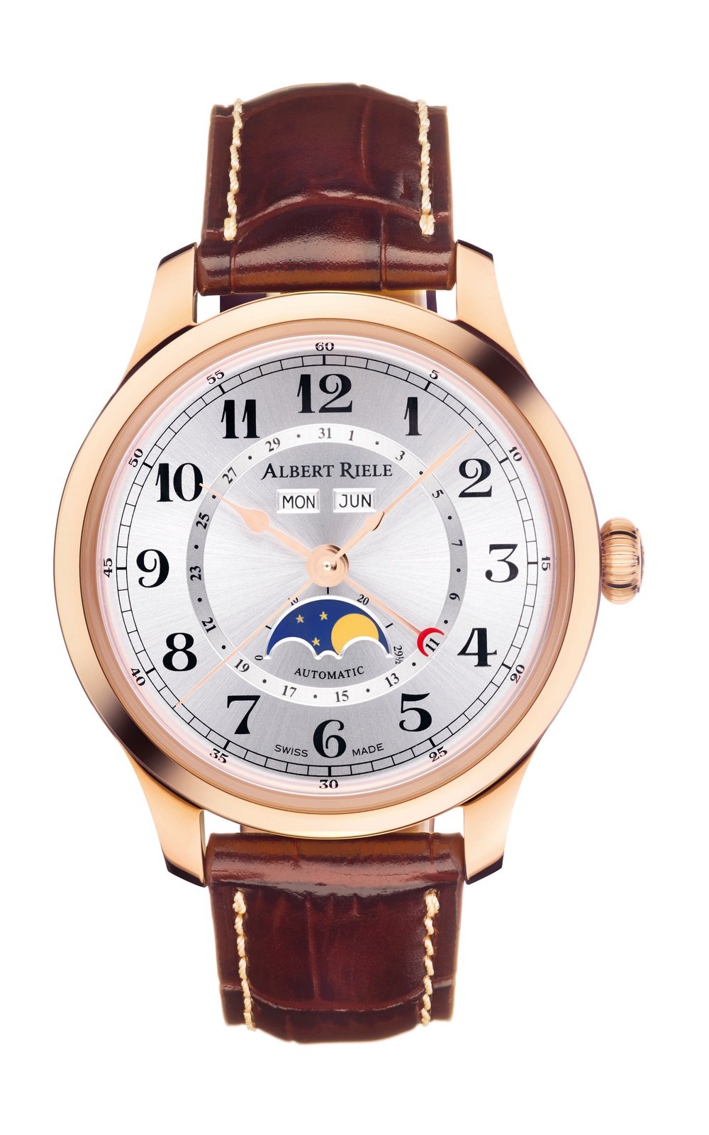 Revealed to mark the 135th anniversary of the company founding, the Family 1881 collection embodies the watershed between history and modernity. Heir to a longstanding watchmaking tradition, its understated elegance is distinguished by a fine balance between form and function. The silver-toned dial of this model features a wealth of details and indications displaying exemplary legibility. The slightly retro-style minutes track follows the curves of the slender bezel in pink gold PVD-treated steel, while the date scale is swept over by a hand tipped with a red half-moon. Dedicated to men exuding an aura of discreet elegance, the Family 1881 is refined yet not ostentatious. There is decidedly no contradiction between tradition and the future. On the contrary, Albert Riele has mastered the subtle art of conjugating watchmaking in every tense.