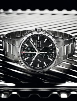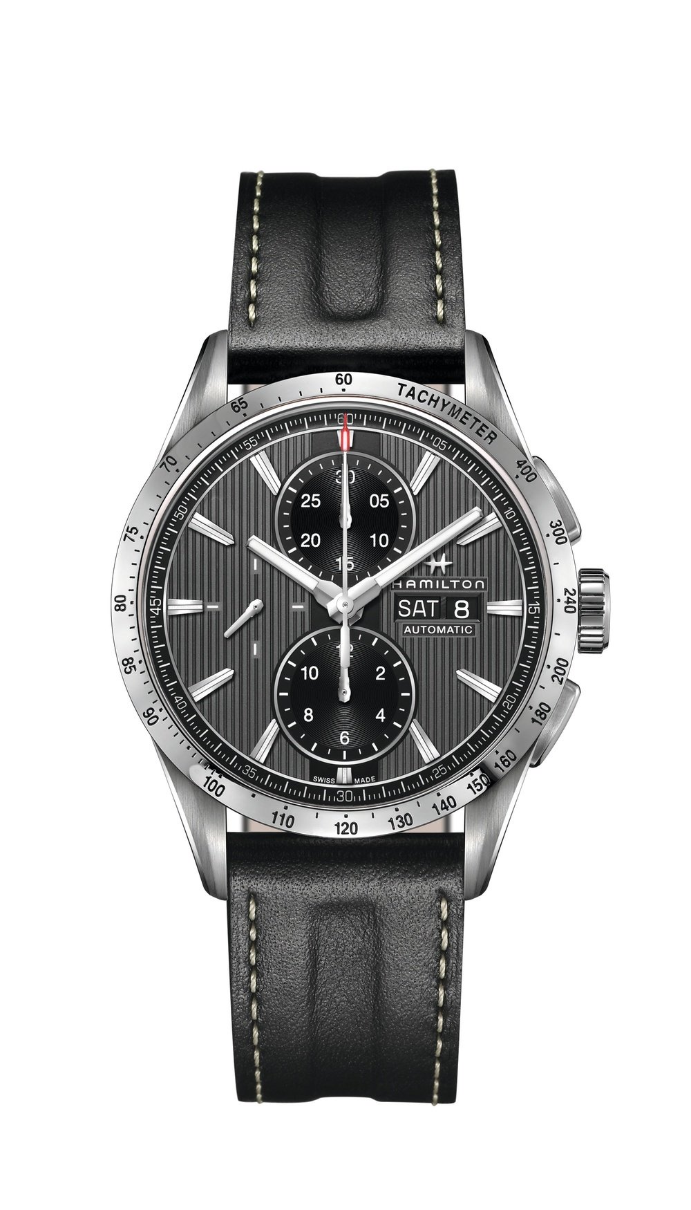The most American of Swiss watch brands lights up Broadway. This new line with its urban, sporty style pays tribute to one of the world’s best-known avenues. This is something of a trip down memory lane for Hamilton, which named its first series of pocket watches, from the 1890s, the Broadway Limited. Fast-forward to today, the automatic chronograph model is full of references to New York and its legendary theatre district. The city’s oldest north-south avenue, Broadway is conjured up by the central line on the dial. The towering buildings that run either side are represented by vertical lines. The skyscraper-style hands, the chronograph counters, and the contrasting polished and satin finishes add to this watch’s distinctly modern vibe.