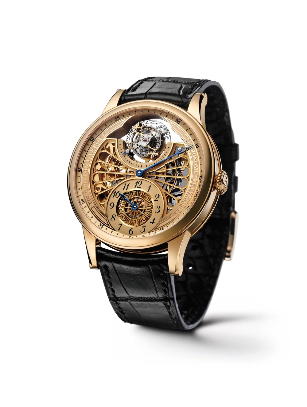 Mechanical automatic, hand-skeletonised L512 calibre, chronometer certified by Besançon Observatory, 23 jewels, 28,800 vib/h, 22K gold oscillating weight, flying tourbillon with two balance springs, diamond escapement, 52-hour power reserve.