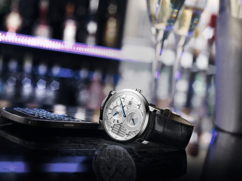 Black or white with Côtes de Genève motif.