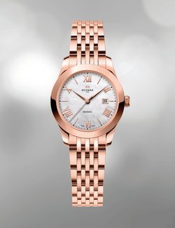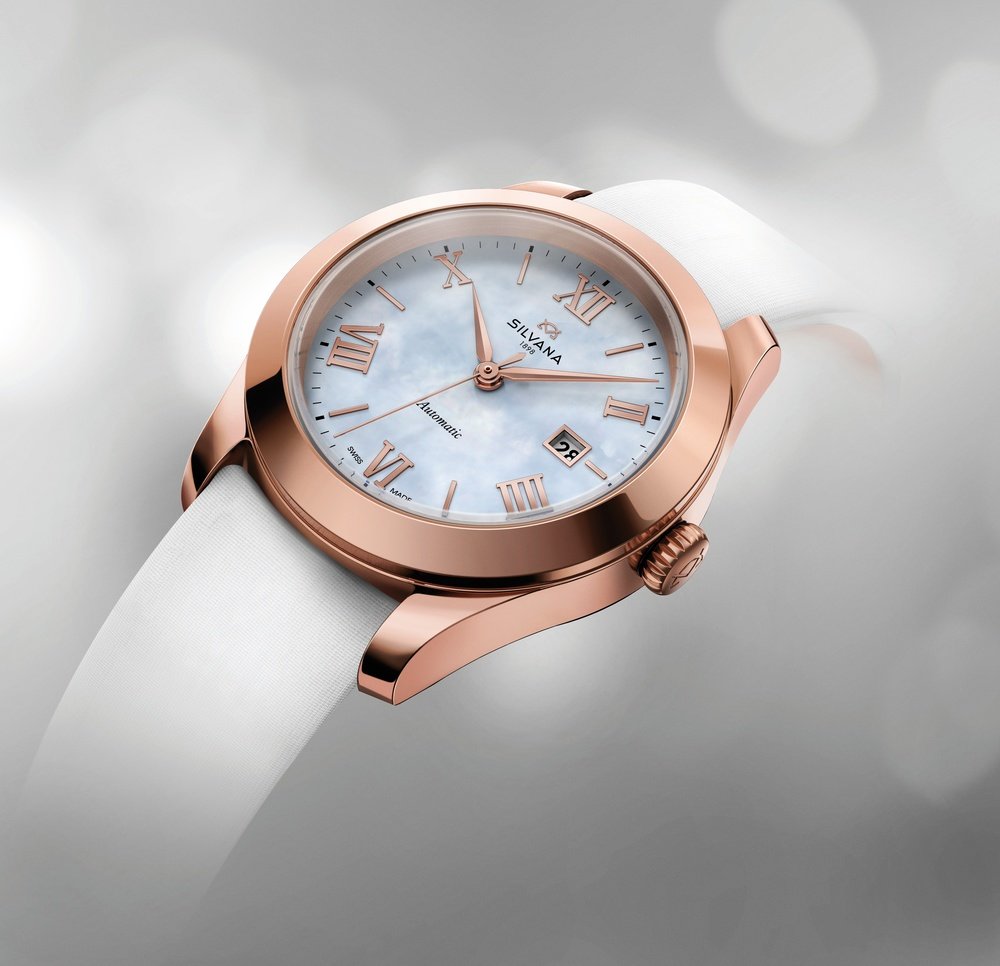After presenting it in a 38 mm diameter, Silvana interprets its Lady LeMarbre in a novel feminine model. Its 28 mm case makes this an unequivocally elegant watch, a style statement distinguished by the warm glow of its pink PVD-treated case and further enhanced by its white mother-of-pearl dial. It nonetheless remains a full-fledged member of the LeMarbre collection, which expresses the timeless values of understated watchmaking. This new model is thus the first Silvana ladies’ watch to be equipped with a mechanical automatic movement, discreetly decorated and visible through the caseback. Fitted with a white satin strap, this Lady LeMarbre 28 mm expresses its delicacy and sensuality in a subtly gentle manner. Nor are men neglected, since there is also a paired set in which the two timepieces are presented in a unique box.