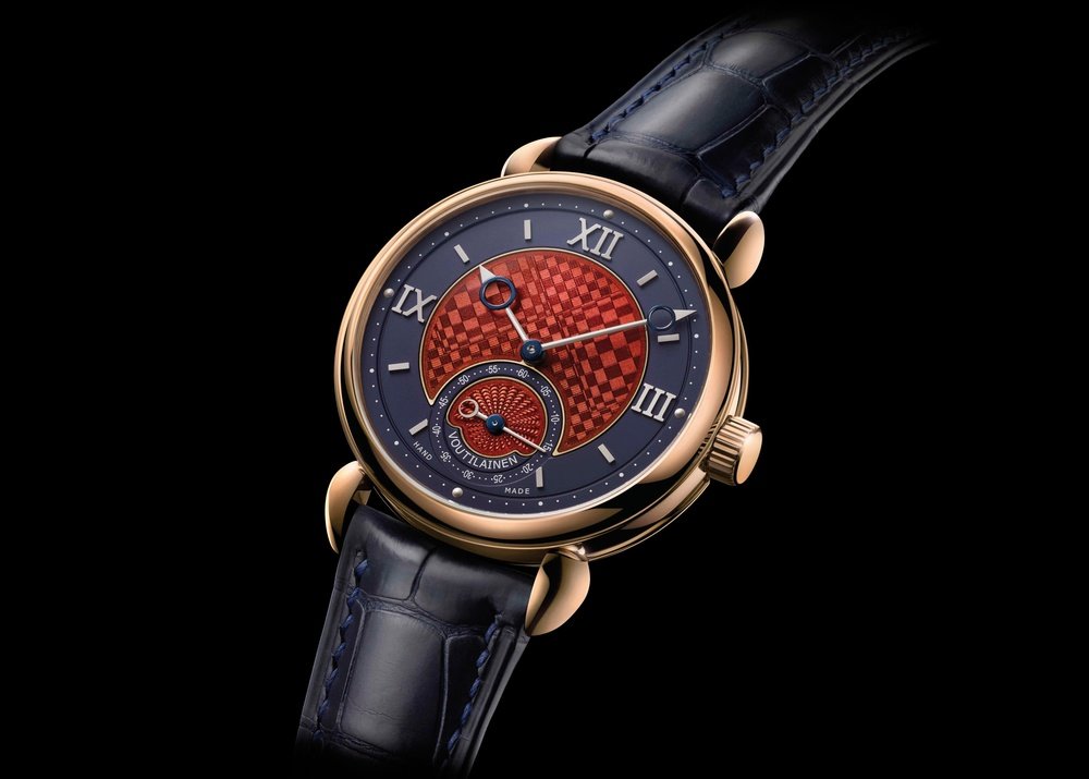 In keeping with the most classic watchmaking traditions, all the watches emerging from the Voutilainen workshops are designed, built, produced, finished and assembled in-house. This Manufacture is equipped with a ‘natural’ escapement built by Kari Voutilainen. It features a balance-spring with a Breguet overcoil and a Grossmann inner curve. The wheels and pinions are perfectly polished, the bridges and mainplate are in German silver and hand-finished to superlative levels. All the steel parts are polished and hand-chamfered. This refined approach is also reflected on the dial of the Vingt-8. A solid silver base is guilloché-worked with a trompe l’oeil motif. Two zones appear to be magnified by an optical illusion created by a subtle variation in the guilloché pattern. The central part is coated with Grand Feu enamel.