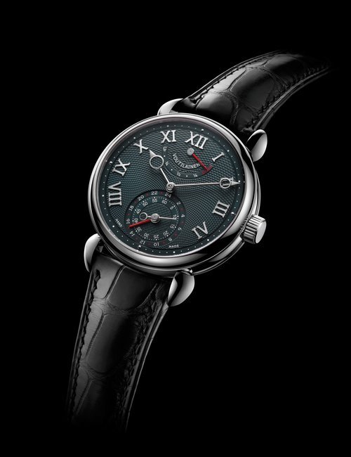 Mechanical hand-wound, 21 jewels, 18,000 vib/h, proprietary direct-impulse escapement with two escapement wheels, large balance-wheel with double-coil balance-spring, German silver mainplate and bridges, gold wheels, 65-hour power reserve.