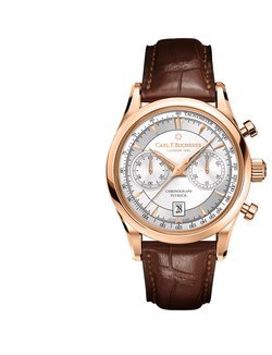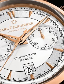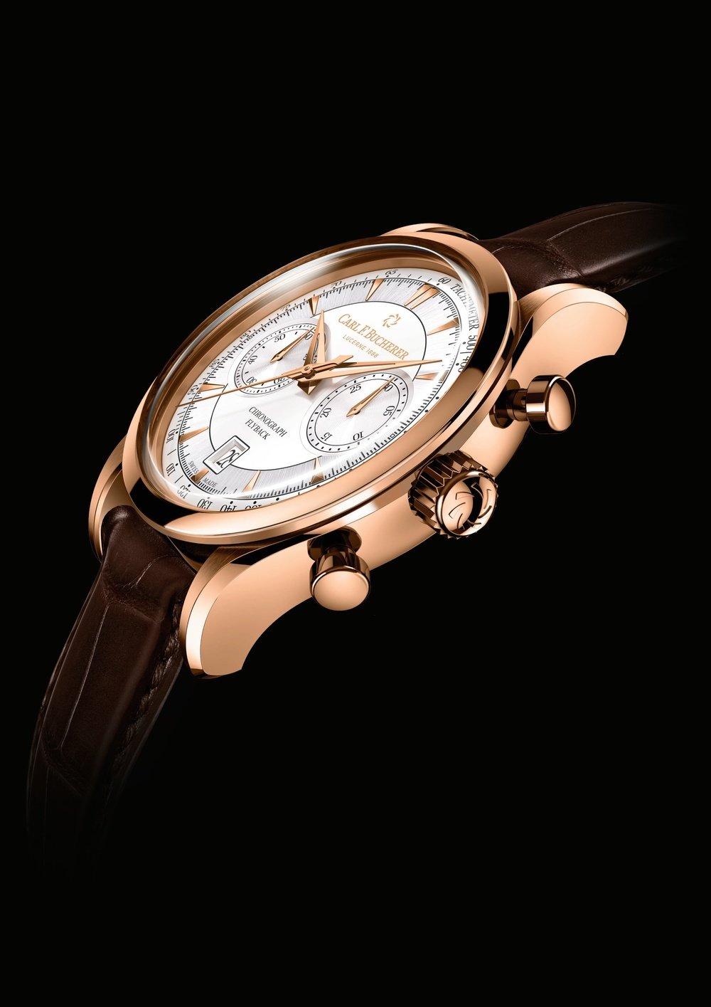 The flyback function is a means of timing a second interval when the chronograph hand is still running and without having to stop the counters first, simply by pressing the reset pusher. This sophisticated mechanism, which in its most noble form incorporates a column wheel, is brought to us by the new Manero Flyback. Proposed in stainless steel or in 18k pink gold, this elegant timepiece sports mushroom-shaped pushers which accentuate the enduringly classic style for which the Manero collection is known. Hour-markers and sword hands in the same metal as the case, together with the delicate minute track, lend a final flourish to this watch’s aristocratic air. The Manero Flyback will undoubtedly win over any admirer of fine mechanical watchmaking.