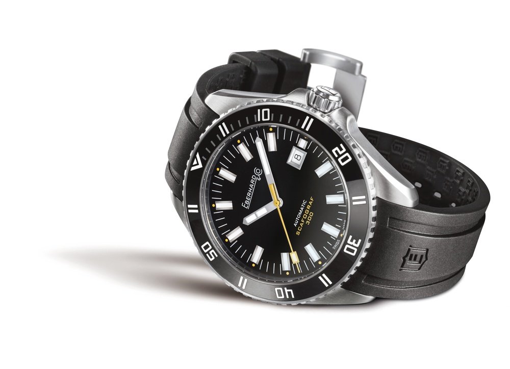 Introduced in the 1950s, the Scafograf has evolved over the years to conquer the hearts of divers everywhere, not least thanks to its sturdy good looks and guaranteed water-resistance to 100, 200, 300, 400, 750, even 1,000 metres! Now Eberhard & Co pays tribute to this icon of the deep with an almost identical replica of the original Scafograf, which it has reinterpreted in the same sporting vein. The robust steel case, unidirectional rotating bezel in ceramic and, unusually for a dive watch, date at 3 o’clock remain highly desirable attributes of this timepiece, which is equipped with a safety valve to release helium from inside the case. This new Scafograf 300 ensures optimum reliability, and promises to stand up to shocks and pressure. The supremely legible dial, highlighted with Superluminova, makes this an essential dive watch that is equally at home underwater as for everyday casual-chic wear.