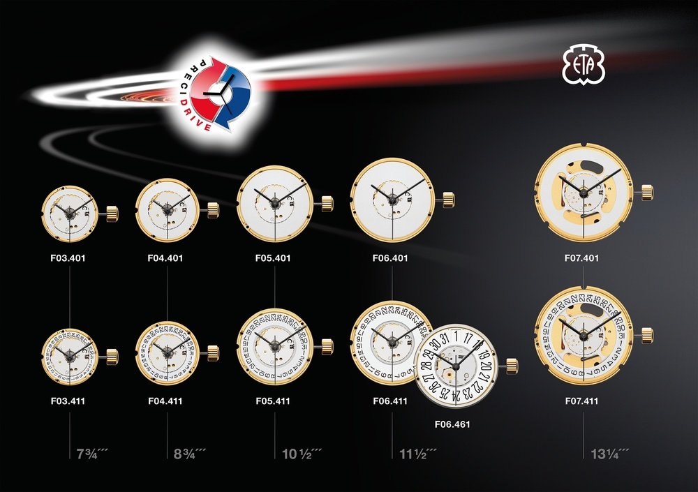 Every movement that ETA has developed since 1793 is guided by precision, reliability and performance. Now the Swiss movement-maker has raised its standards of quality even higher to propose a record level of precision: +/- 10 seconds per year or 0.027 second per day. This unprecedented accuracy is down to PreciDrive exclusive technology. Integrated into a collection of eleven new quartz movements, this new development has no trouble meeting COSC criteria to obtain “Chronometer” certification. This ultimate degree of precision comes in five calibre sizes from 7¾´´´ to 13¼´´´ with or without date. The height of the calibres in the FOX family remains the same to offer interchangeable movements with various cases.