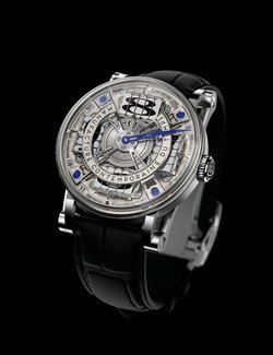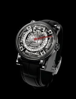 The prism display concept of watches by Manufacture Contemporaine du Temps has remained the same, extraordinarily original system since it was first invented. Using a movement that was designed and manufactured entirely in-house, MCT displays digital hours on four blocks made up of five triangular prisms. Every sixty minutes, an arc rotates 90° to highlight the current hour. As the prisms turn, each new hour is brought into view at exactly the right time. Minutes are displayed by a classic central hand. The 46.4 mm-diameter round case with its sapphire crystal glassbox gives the Sequential Two S210 its unique style. Components and prisms are highlighted by meticulous finishing. This uncompromising design is set in motion by an off-centre micro-rotor in gold.