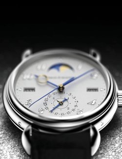 Hours, minutes, seconds, moon phases and perpetual calendar (day, date, month, leap year).