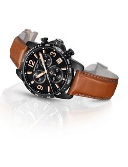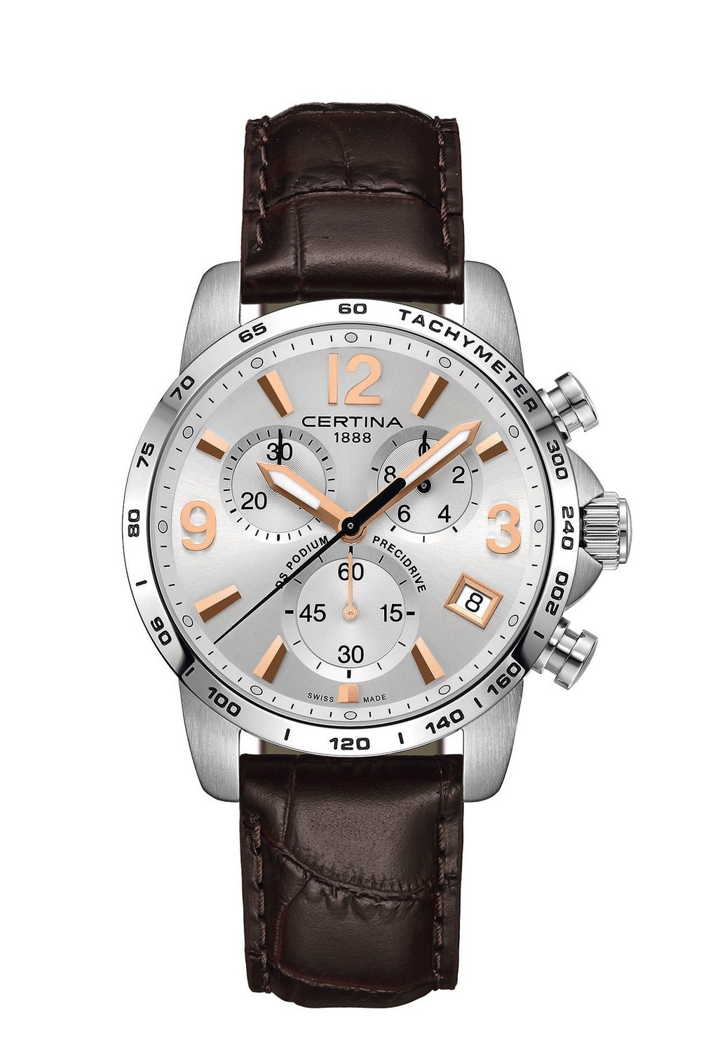 Very few quartz chronographs can lay claim to the absolute precision of a chronometer (+/- 10 seconds per year). The DS Podium Chronograph belongs to this extremely selective circle, thanks to its Precidrive™ movement powering a 1/10-second timing display. Reflecting this level of performance clearly intended to keep track of sporting feats, this particularly stylish line features distinctive design codes including a topstitched leather strap, sleek lines, a contrasting face and extreme readability. The DS Podium chronograph is immediately recognisable and a popular model in the Certina line. It also enriched with the DS (Double Security) system, comprising a reinforced case, a scratch-resistant sapphire crystal and special gaskets equipping the stem, crown and caseback. This approach guarantees exceptional resistance even in case of intensive use. A sporty, accurate and elegant watch to be worn in every circumstance.