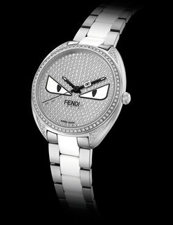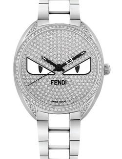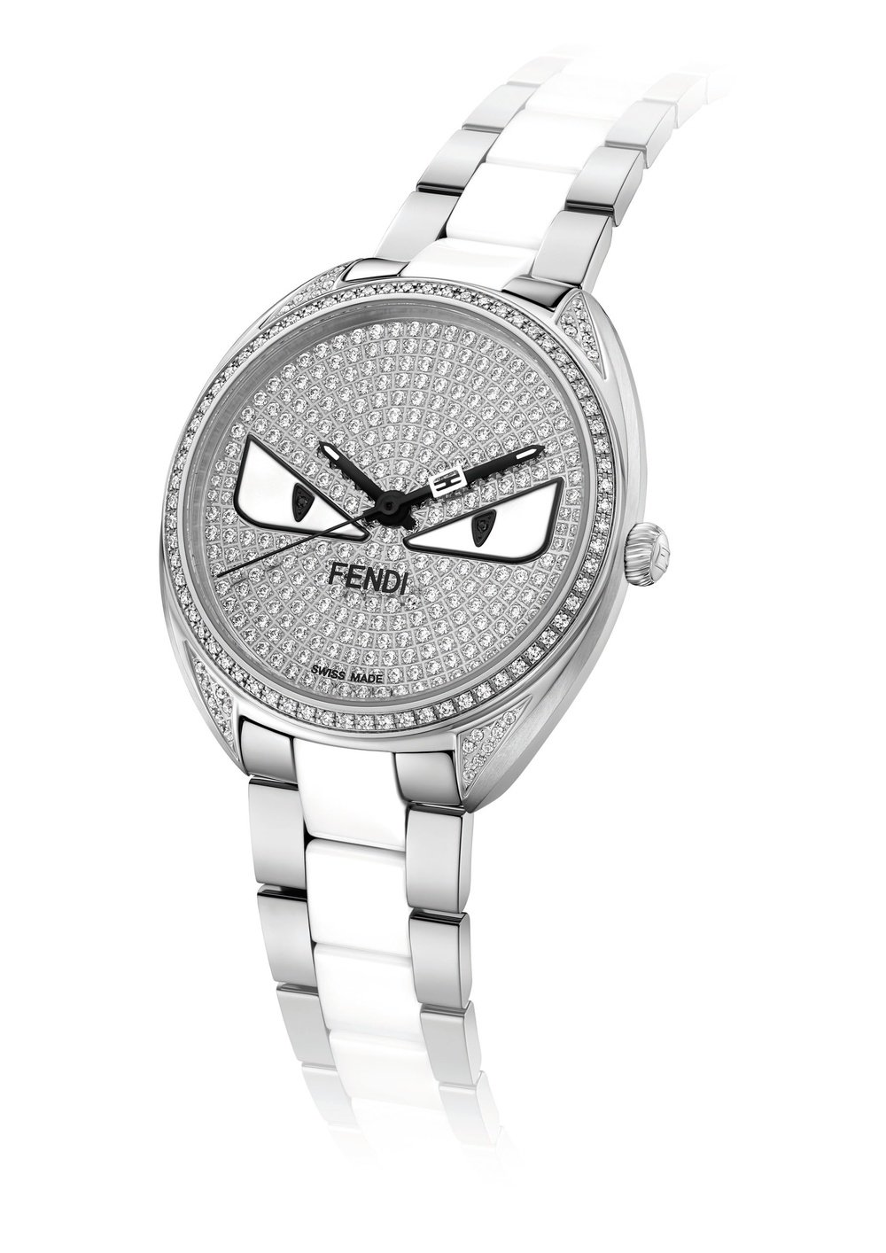 Inspired by the famous Fendi Bugs, the tiny furry creatures that invade the fashion world with their bewitching eyes, the new Momento Fendi Bugs Limited Edition appears in a feminine touch. Issued in a 50-piece limited and numbered edition, this stainless steel model is adorned with a total of 382 diamonds – of which 286 for the dial. The pupils set at the centre of the Momento Fendi Bugs’ mischievous and angry-looking eyes are depicted by two black diamonds. This watch is fitted with a stainless steel bracelet accented by an extremely elegant and luminous row of white ceramic links that endow this creation with a soft feel as well as distinctive character. In an amusing detail, when the seconds hand crosses paths with the minutes hand, they briefly unite to form the Fendi logo. A playful and feminine high-end watch.
