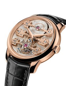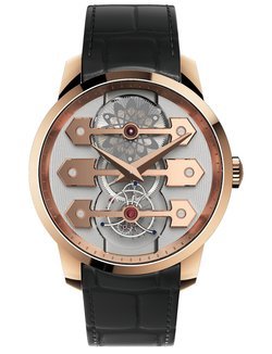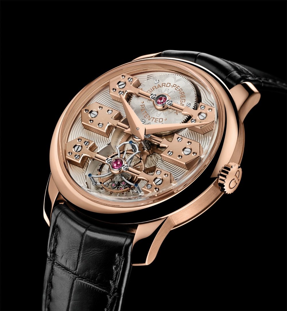 As a tribute to one of its finest historic creations, and to celebrate the 225th anniversary of its founding, Girard-Perregaux presents La Esmeralda Tourbillon. Distinguished by a Gold Medal at the Paris World Fair in 1889, the La Esmeralda pocket chronometer secured a place in watchmaking history for the refinement of its architecture, its precision, and for the incomparable quality of its finishing. The La Esmeralda Tourbillon transposes these qualities to the wrist, as a version of the Tourbillon with Three Gold Bridges which has come to represent the extraordinary expertise cultivated by the Manufacture Girard-Perregaux. It has no dial, revealing instead its three large, arrow-shaped bridges, with their jewel settings, in solid gold. They are rounded-off, chamfered and polished entirely by hand. These three bridges carry the wheels, the barrel and the tourbillon inside its lyre-shaped cage. They are set against the backdrop of a silvered and engraved plate which brings a striking sense of depth to this exceptional timepiece.