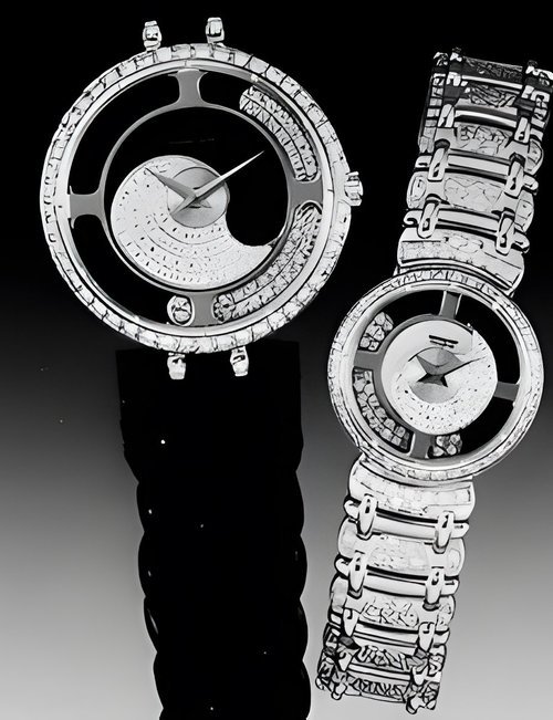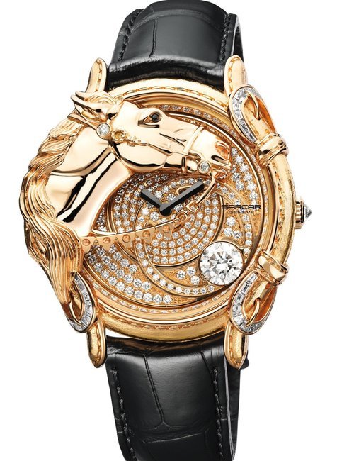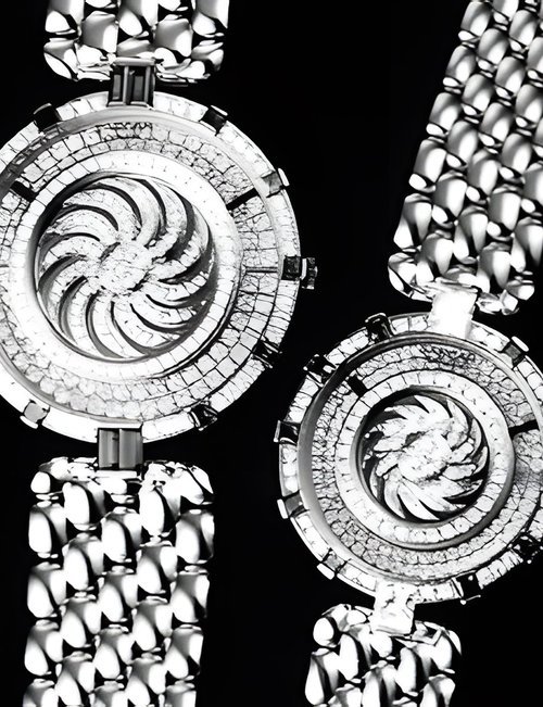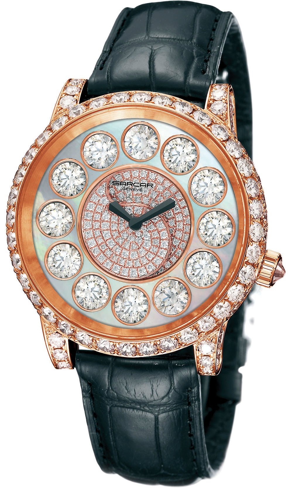 The full-pavé centrepiece together with the 12 rotating hour-markers is adorned with a stunning array of the finest diamonds, reaching a truly impressive carat weight.