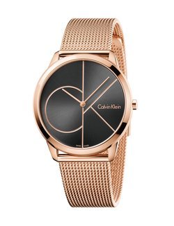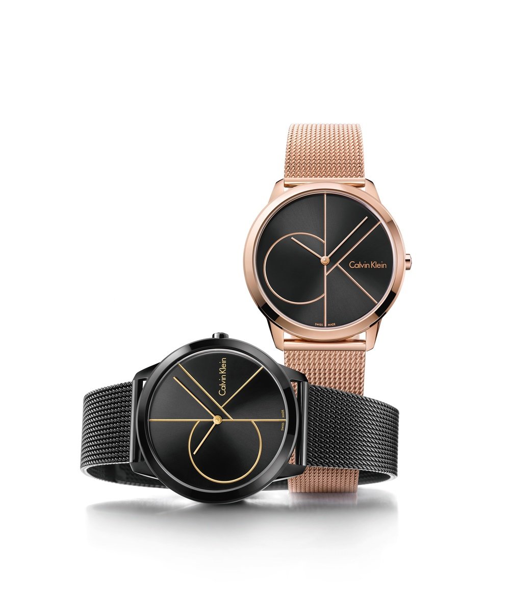Calvin Klein revisits a grand classic. A vintage-inspired icon is now reinterpreted through an authentic anthem to restrained purity, aptly named Calvin Klein minimal. The understated graphic lines of the dial form a perfectly controlled design accentuated by the extremely slim bezel framing the case. This new unisex model comes in two sizes available in various colour variations, either playing with contrasts or taking a tone-on-tone approach. The case comes in stainless steel, yellow gold PVD, pink gold PVD or black PVD-finished variations, teamed with a matching Milanese mesh bracelet or a black leather strap. The hours and minutes tick off the time against a blue, silver-toned or black dial background.