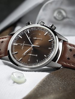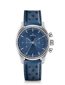 Zenith revisits one of its historic 1960s models in giving life to a new chronograph with a delightfully vintage air: Heritage 146. While it picks up the retro look of its predecessor, with the same 38 mm case, it is driven by a new high-frequency movement powering a chronograph function and ensuring a 50-hour power reserve, whereas the original 146D calibre beat at the rhythm of 18,000 vibrations per hour, had a 38-hour power reserve and displayed only the hours, minutes and small seconds. In a nod to the 1960s, today’s El Primero 4069 movement orchestrates a dial layout typical of that period, with two counters lined up on a date-free dial available in sunburst blue or tropical brown versions. A competition leather strap sets the perfect finishing touch, underscoring the vintage nature of this model capable of subtly mingling distinct eras.