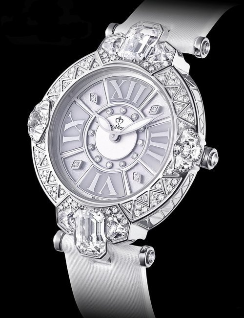 From Paris to Beijing, from New York to Cairo, Bijoumontre takes us on an unforgettable journey to the world’s most desirable destinations. The Around the World watch conjures up ten iconic landmarks as “world charms”, and transforms them into enchanting compositions for the wrist. Mother-of-pearl, or perhaps howlite or amazonite, blend with sparkling diamonds for a touch of eternity. Whether a dream of faraway horizons or the memory of a romantic getaway, the Around the World watch transforms to reflect the place nearest to its wearer’s heart. Thanks to an ingenious system of interchangeable elements, the ten world charms, which include the Eiffel Tower, the Statue of Liberty, the Pyramids of Egypt and the Sphinx, alternate on the dial as the starting point for a journey to remember, right there on the wrist.