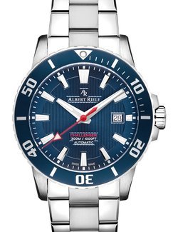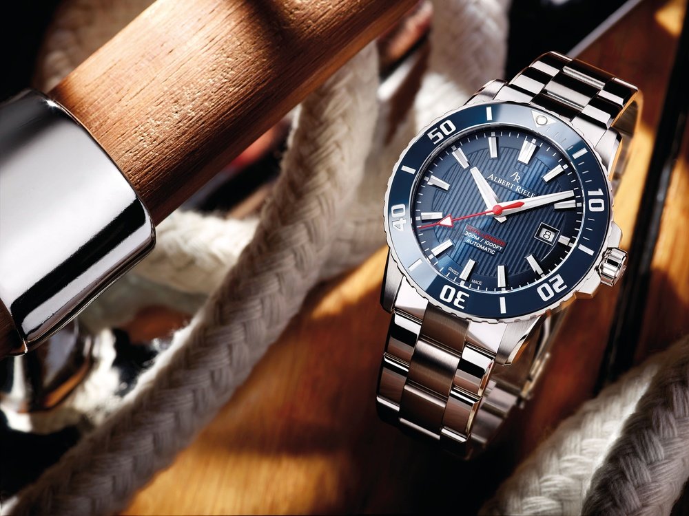 Mechanical automatic, Sellita SW200 calibre, 26 jewels, 28,800 vib/h, oscillating weight with Côtes de Genève decoration and Albert Riele logo, 38-hour power reserve.