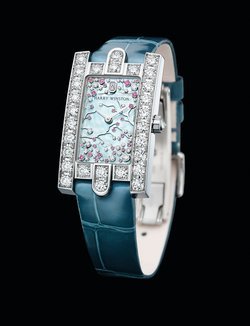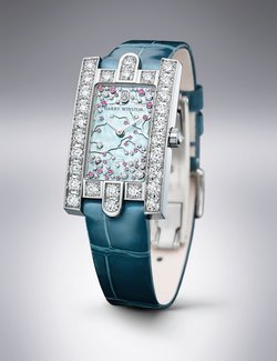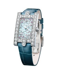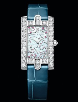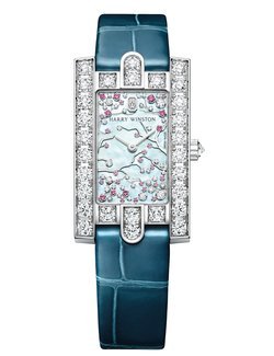 Harry Winston captures the ephemeral beauty of a cherry tree in bloom to give life to the captivating Avenue Classic Cherry Blossom. For the dial, mother-of-pearl makes an iridescent backdrop to a flurry of 39 white diamonds and 29 pink sapphires that represent the flowers and petals of the cherry blossom tree, a sign that spring has arrived. Attached to the white gold branches or floating gently to the ground, the precious stones are cut in different sizes to create fascinating effects of depth and movement. They form a representation of nature’s beauty that will never fade. This magnificent tableau is framed by an 18k white gold case whose architecture echoes the stately stone facade of Harry Winston’s historic Fifth Avenue Salon in New York, and the three arches surrounding the entrance. The 29 brilliant-cut diamonds on the case are a reminder of the long-standing association between the House of Harry Winston and precious stones.