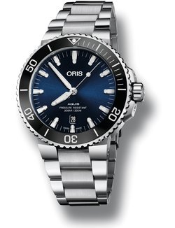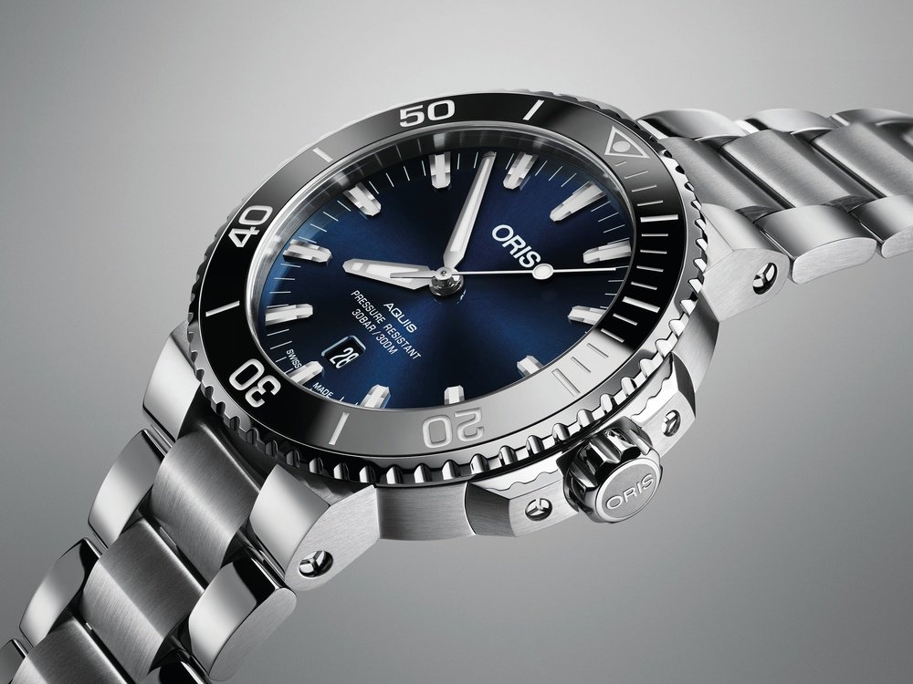 The Oris Aquis Date is a new milestone in Oris’ history as a maker of high-performance diver’s watches since the 1960s. Its design brings a touch of elegance to this tool watch, which is just at home under a cuff as under water. The lugs and the bracelet are now thinner, while hands and hour-markers have been given a bolder, sharper appearance. The unidirectional bezel, in black ceramic, is easier to grip, thanks to a small gap introduced between the case and the body, while retaining the same excellent legibility for keeping track of dive time. The sleeker silhouette of the Aquis watch brings a new mark of refinement, without sacrificing any of the technical performance for which it is renowned, including water-resistance to 300 metres.