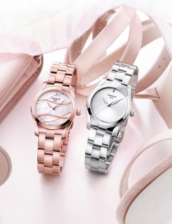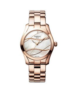 Inspired by the graceful dance of a ribbon swirling in the wind, the T-Wave radiates a delightfully light and elegant design. The rounded curves of its case and lugs perfectly hug the lines of the flowing silk. The dial features a teardrop index set with white or black mother-of-pearl, while the dainty skeletonised hands accentuate the pure nature of the timepiece. Available with a dial pared down to its simplest expression or swept over by a discreet flurry of ribbons revealing the shimmering mother-of-pearl beneath, the Tissot T-Wave play with various glamorous touches, alternately focusing on absolute purity or evoking a piece of jewellery. Polished or diamond-set, in steel or pink PVD-treated versions, it is suitable for wear on any occasion: it makes a perfectly chic accessory suitable for every occasion, whether adding a refined touch to a daytime outfit, as well as complimenting an evening gown for a special occasion.