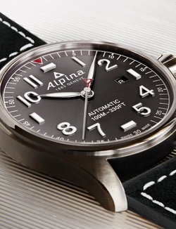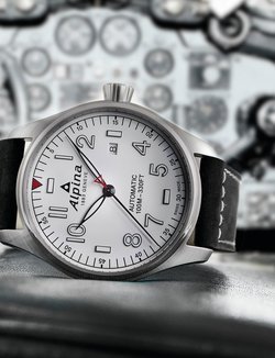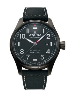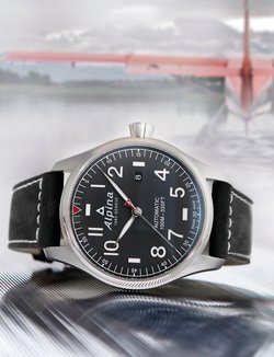 A true reference brand in the field of aviation, Alpina was official supplier of military watches to the pilots of the continental air forces during the first half of the 20th century. Inspired by these legendary models, its Startimer Pilot collection launched in 2011 quickly established itself as an authentic modern-day professional instrument, while remaining true to the original requirements of aviation pioneers: precision and extreme shock resistance, as well as impeccable legibility and a non-magnetic case. The new Startimer Pilot Automatic presented today is no exception. At the heart of a 44 mm case available in various executions beats an automatic calibre oscillating at 4 Hz to ensure optimal precision. On the dial, the iconic Alpina red triangle on the central sweep-seconds hand and at 12 o’clock enliven the highly readable overall display enhanced by luminescent oversized hands.