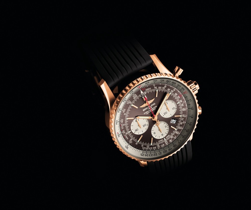 Leather, crocodile leather, rubber Navitimer strap or Navitimer bracelet (steel only).