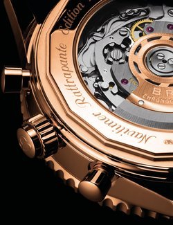 Steel or 18K red gold (250-piece limited edition). Rotating bezel with circular slide rule. Cambered sapphire crystal, glareproofed on both sides. Transparent sapphire crystal caseback. Water-resistant to 30 metres (3 bar/100 ft).