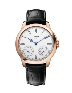 5N 18k red gold with Czapek "Queen Bee" maker's mark, 38.5 mm. Domed sapphire crystal and sapphire back, both with anti-reflective coating on the inside. Water-resistant to 30 metres (3 bar/100 ft).