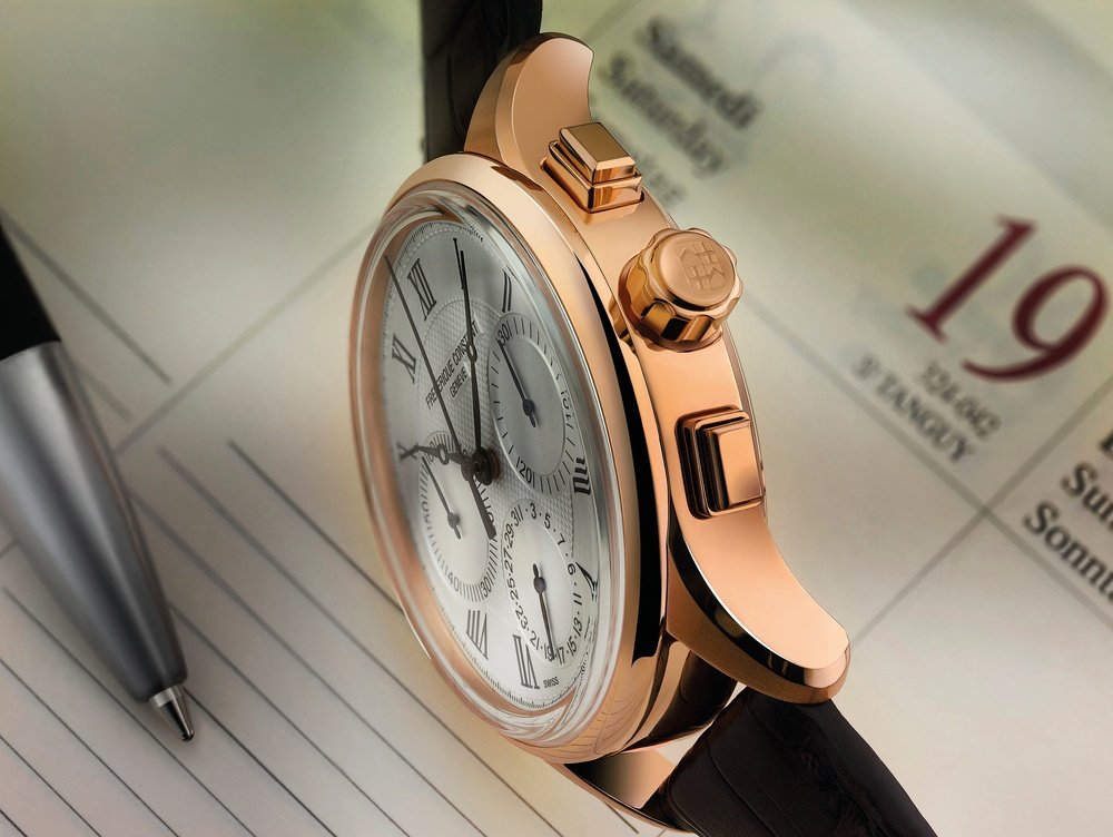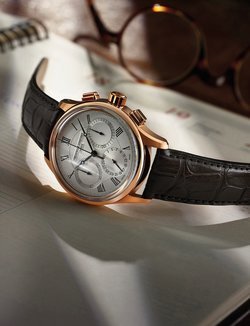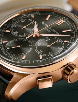 Frederique Constant presents an authentic feat with its new Flyback Chronograph Manufacture, retailing for under 4,000 euros. At its heart beats Caliber FC-760, entirely developed and created in-house. Thanks to its flyback function, this chronograph can measure a succession of events, such as during a race, without needing to be reset to zero every time. It is also equipped with a “Direct In-Line” function enabling instantaneous activation of the flyback function, with zero-resetting and launch of a new measurement simply by pressing a pusher at 4 o’clock. Contrary to classic constructions, the chronograph functions are distributed not by a column wheel, but instead by a star-shaped wheel driven by a pusher, thus ensuring particularly smooth operation. Another innovation is a clutch powered by a device based on two toothed pinions. A vivid example of rewriting the rule book on one of the most demanding mechanical complications.